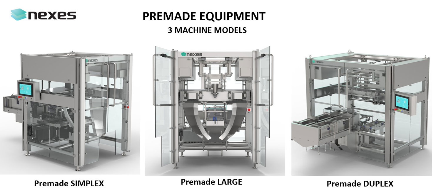 The market demands products on the shelf with a stable bottom line, and this implies a large investment or a change in the technical structure of your maintenance team, or they simply do not fit. With the Nexes Premade machine, thanks to its compact design and its central product loading point, we can replace any vertical machine taking advantage of the customer’s platform and weigher, as well as its output belt, with zero hours of engineering and in the same installation day. In the event that you do not have these attached elements, we can offer you complete turnkey solutions with all the integrated software.